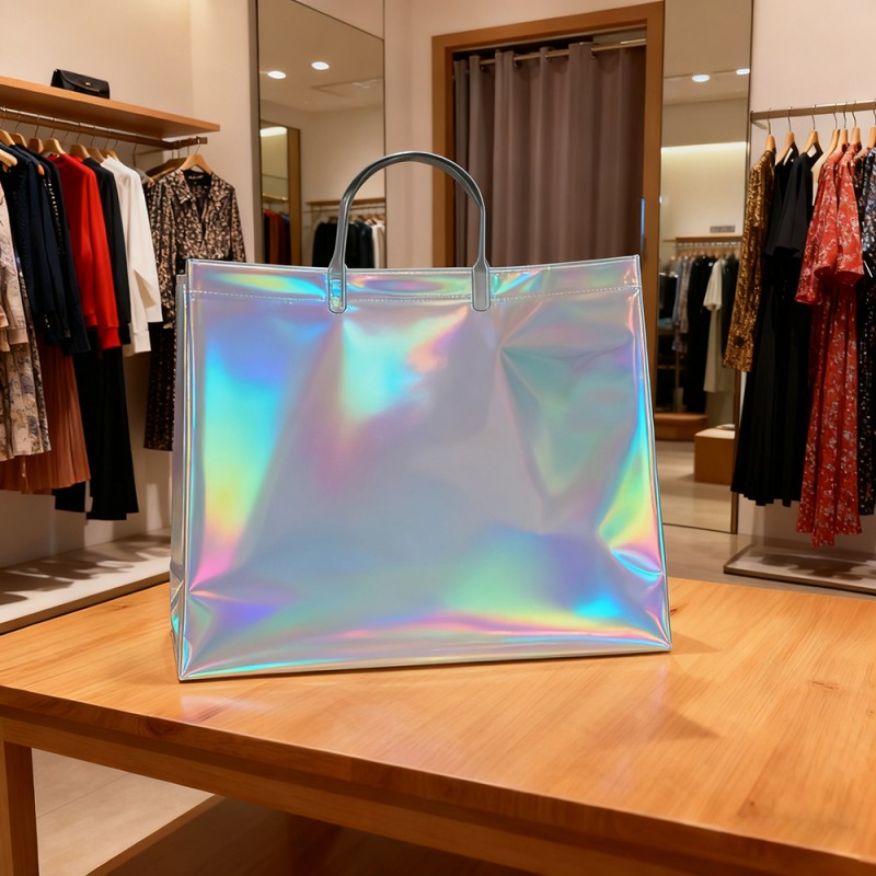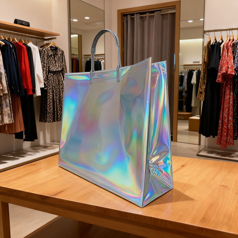 Hiệu ứng hình ảnh mê hoặc: Lớp hoàn thiện có màu sắc cầu vồng và các mẫu hình ba chiều sống động phản ứng với ánh sáng và chuyển động, tạo ra quang phổ thay đổi liên tục. Tùy chỉnh in nhãn hiệu và mẫu. Sự hấp dẫn trực quan độc đáo, nổi bật trong mọi môi trường. Cấu trúc vật liệu cao cấp: Nhựa chất lượng cao với lớp màng laser bền bỉ. Lớp phủ bề mặt chống trầy xước và chống nước. Tay cầm được gia cố và các điểm căng thẳng để tăng cường độ bền. Duy trì tính toàn vẹn cấu trúc dưới trọng lượng nặng. Chức năng nâng cao: Chất liệu nhựa và công nghệ mới có thể bảo vệ chống thấm nước cho đồ bên trong đồng thời giúp bề mặt dễ lau chùi. Với tải trọng tối đa 10 kg, nó cũng có thể mang lại cảm giác cầm nắm thoải mái. Giá trị nâng cao thương hiệu: Tạo ra những trải nghiệm khó quên khi mở hộp, vẻ ngoài xuất sắc sẽ khuyến khích khả năng hiển thị và chia sẻ trên mạng xã hội, mở rộng mức độ hiển thị thương hiệu thông qua việc sử dụng nhiều lần và thiết lập nhận thức về thương hiệu cao cấp. Ưu điểm về môi trường: Thiết kế có thể tái sử dụng giúp giảm lãng phí bao bì. Cấu trúc bền đảm bảo tuổi thọ lâu dài.