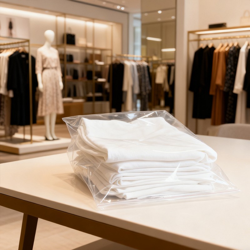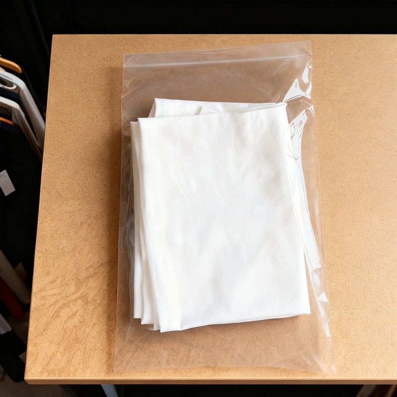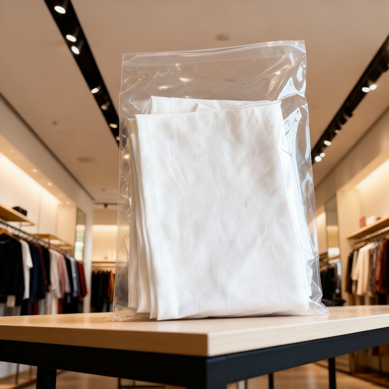 Bảo vệ quần áo: Túi PE của chúng tôi có thể đóng vai trò như một rào cản đáng tin cậy chống lại các chất ô nhiễm thông thường. Chúng ngăn chặn hiệu quả sự xâm nhập của bụi bẩn và hơi ẩm trong quá trình bảo quản và vận chuyển. Điều này đảm bảo rằng quần áo từ lụa mỏng đến áo sơ mi cotton mát mẻ, từ kho đến tay khách hàng, đều có thể được giữ sạch sẽ và gọn gàng. Tầm nhìn rõ ràng: Độ trong suốt của vật liệu polyetylen mang lại khả năng hiển thị sản phẩm tuyệt vời. Nó có thể thể hiện đầy đủ màu sắc, họa tiết và thiết kế của quần áo, đồng thời giúp nhanh chóng xác định hàng tồn kho mà không cần mở từng túi. Bề mặt không in: Vì không in nên không cần lo lắng mực làm nhiễm bẩn sản phẩm, giúp loại bỏ nguy cơ để lại vết ố hoặc vết khó coi trên sản phẩm. Đảm bảo rằng chúng trông hoàn hảo khi mở ra khỏi bao bì. Tính năng này rất quan trọng đối với quần áo màu trắng, sáng màu hoặc có giá trị cao. Khách hàng cũng có thể sử dụng các phương pháp khác để phân biệt sản phẩm theo nhu cầu của mình. Nó cũng có thể được sử dụng như một bao bì phổ thông để bán. Bền và chống thủng: Mặc dù có kết cấu nhẹ nhưng chất liệu PE có độ bền và khả năng chống rách tuyệt vời. Nó có thể chịu được các yêu cầu nghiêm ngặt về xử lý, đóng gói và vận chuyển, giảm nguy cơ hư hỏng túi và đảm bảo an toàn cho sản phẩm của bạn trong toàn bộ chuỗi cung ứng. Hiệu quả về mặt kinh tế và nhẹ: Những chiếc túi này đạt được sự cân bằng giữa hiệu suất và tính kinh tế. Trọng lượng nhẹ hơn của chúng giúp giảm chi phí vận chuyển, khiến chúng trở thành lựa chọn khôn ngoan về mặt kinh tế cho các doanh nghiệp thuộc mọi quy mô, từ các cửa hàng nhỏ đến các nhà sản xuất lớn. Kích cỡ có thể tùy chỉnh và niêm phong dễ dàng: Có thể tùy chỉnh theo mọi kích thước, phù hợp với tất cả các sản phẩm từ tất và phụ kiện đến váy và áo khoác dài. Những túi này có thể được cung cấp ở dạng cuộn để đóng gói tự động tốc độ cao hoặc dưới dạng túi riêng lẻ để sử dụng thủ công. Chúng có băng dính hai mặt tự dính, an toàn để dán kín nhanh chóng và dễ dàng.