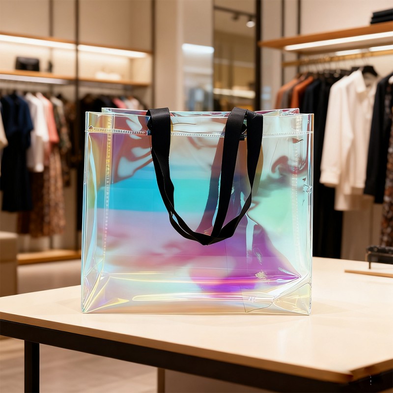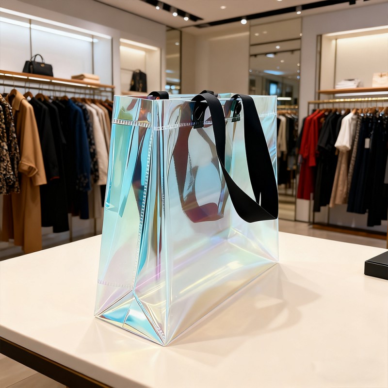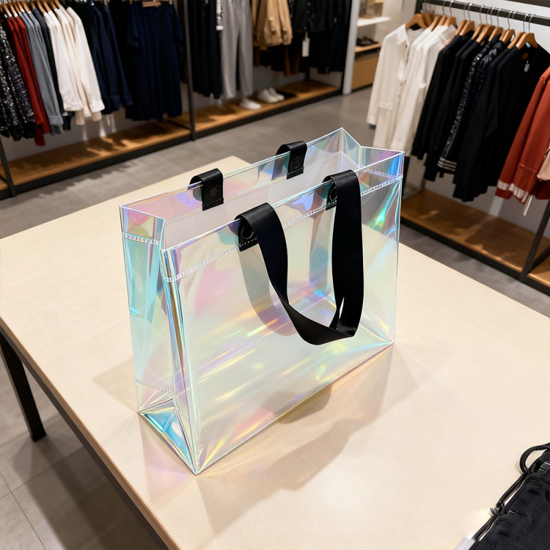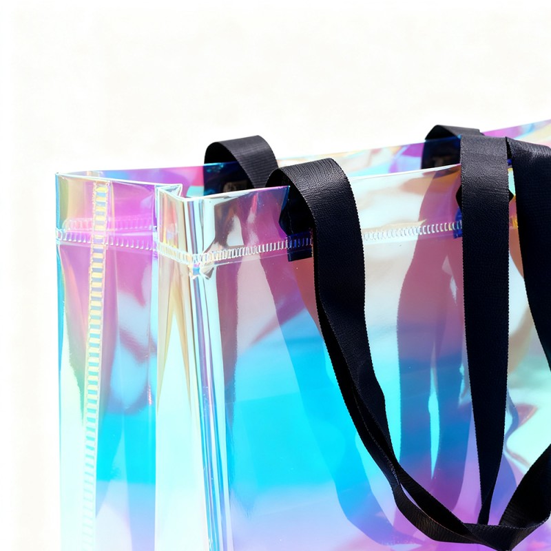 Hấp dẫn trực quan năng động: Lớp màng đặc biệt của chiếc túi này tạo ra sự chuyển đổi màu sắc tuyệt đẹp thay đổi theo góc nhìn. Cầu vồng này có độ bóng đẹp tương tự như bong bóng xà phòng, tạo nên một tác phẩm nghệ thuật sống động. Dạng xử lý này bên trong vật liệu sẽ không bị phai màu khi sử dụng lâu dài. Cấu trúc bền bỉ: Phim cầu vồng không chỉ có bề mặt đẹp mà còn mang lại khả năng bảo vệ tuyệt vời. Bề mặt có khả năng chống trầy xước, chống mài mòn, chống ẩm và có thể duy trì hiệu quả ngay cả khi sử dụng lâu dài. Túi xách này được làm bằng vật liệu chất lượng cao và công nghệ liên kết siêu âm, kết hợp sự hấp dẫn thị giác với độ bền. Khả năng tùy chỉnh tuyệt vời: Khách hàng có thể giới thiệu hoàn hảo thương hiệu, nhãn hiệu, khẩu hiệu và các thông tin khác của mình thông qua hình thức đẹp mắt của phim cầu vồng. Tỷ lệ hoàn trả 100% có thể mang lại khả năng hiển thị sản phẩm cao cho khách hàng. Kích thước có thể được tùy chỉnh và tay cầm có thể được lựa chọn theo yêu cầu cụ thể của thương hiệu, mang lại sự linh hoạt cho các nhu cầu tiếp thị khác nhau. Ưu điểm về môi trường: Loại túi này được thiết kế cho nhiều mục đích sử dụng và hỗ trợ các sáng kiến đóng gói bền vững. Cấu trúc bền bỉ của nó khuyến khích sử dụng nhiều lần đồng thời giảm tác động đến môi trường và nâng cao nhận thức về thương hiệu.